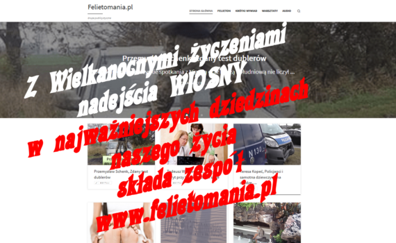 9 Wiosna, to najradośniejsza dla mnie pora roku. Przyroda budzi się do życia, a ja wraz z nią. Zimowa chandra znikła jak „sen złoty”, a ja nabieram energii i chęci do działania. Wiosenne porządki nie są męczące, praca jakoś przyjemniej płynie.Dni są dłuższe, wreszcie ciepłe. Chętniej wychodzę na spacery, szukam pierwszych zwiastunów nadchodzącej wiosny. Zauważyłam ostatnio, że to moje nastawienie udziela się innym ludziom. Częściej odpowiadają uśmiechem na uśmiech, wdają się w pogodne pogawędki. To taki „efekt uboczny” tej pory roku. Tak, jakby ludzie otrząsnęli się z zimowego marazmu. Jak ślimaki po deszczy wychodzimy ze skorupek, ciekawie przyglądamy się światu. Robi się zielono nie tylko w przyrodzie, ale i w głowach niektórym. Zaczęło się od primaaprilisowych kawałów, które w tym roku wzbogacone były niemal od razu o śmigus dyngus. Dobry humor jest zaraźliwy, udziela się i rozprzestrzenia szybko jak wirus. To bardzo pozytywne zjawisko, bo ludzie uśmiechnięci mniej są skłonni do […]